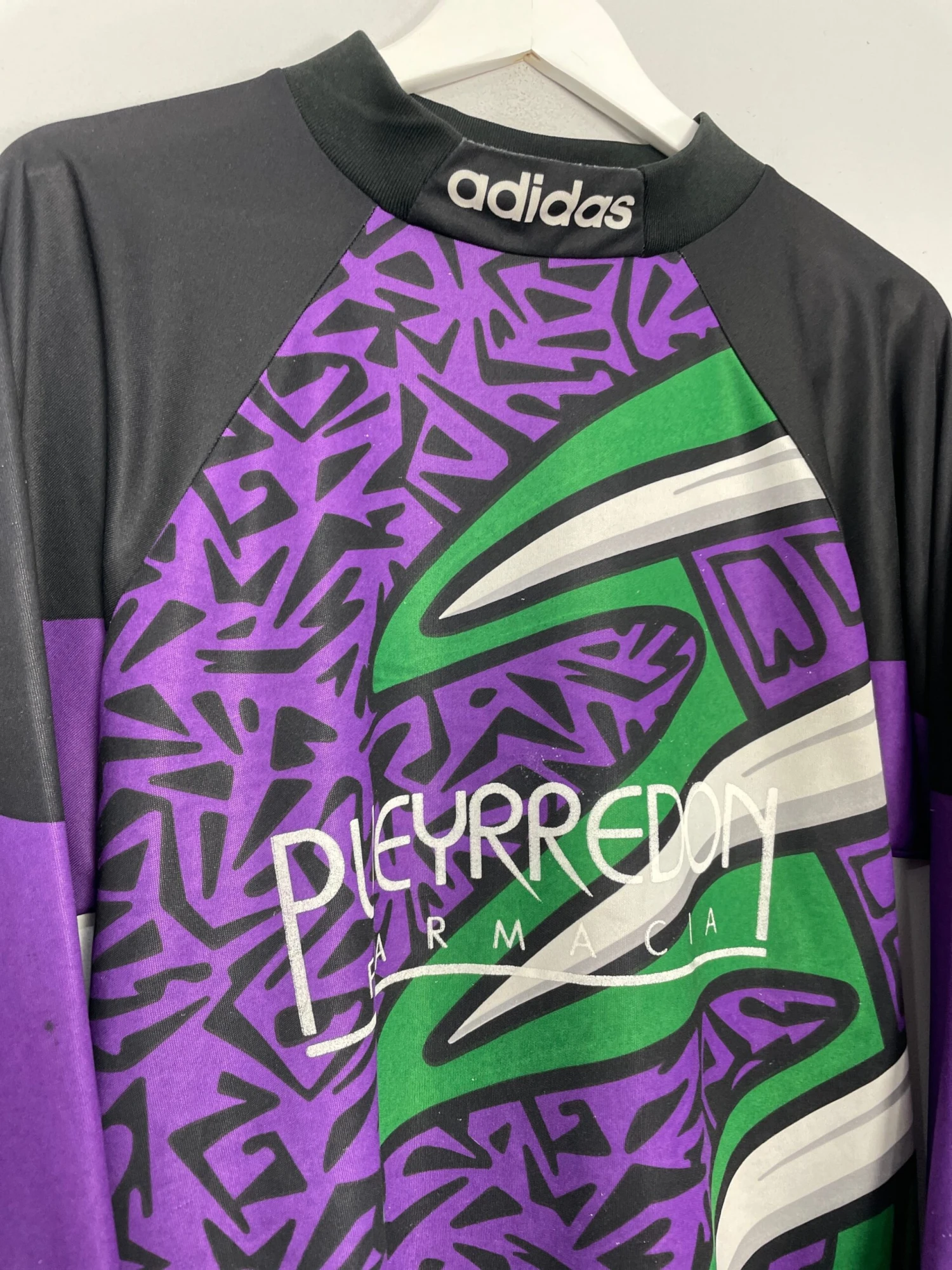 CONDITION – Good – a small hole to sleeve and to back of collar, a few minor pulls/bobbles throughout, colours are vibrant, some very faint wear to painted numbers and sponsors, colours are vibrant (see photos)