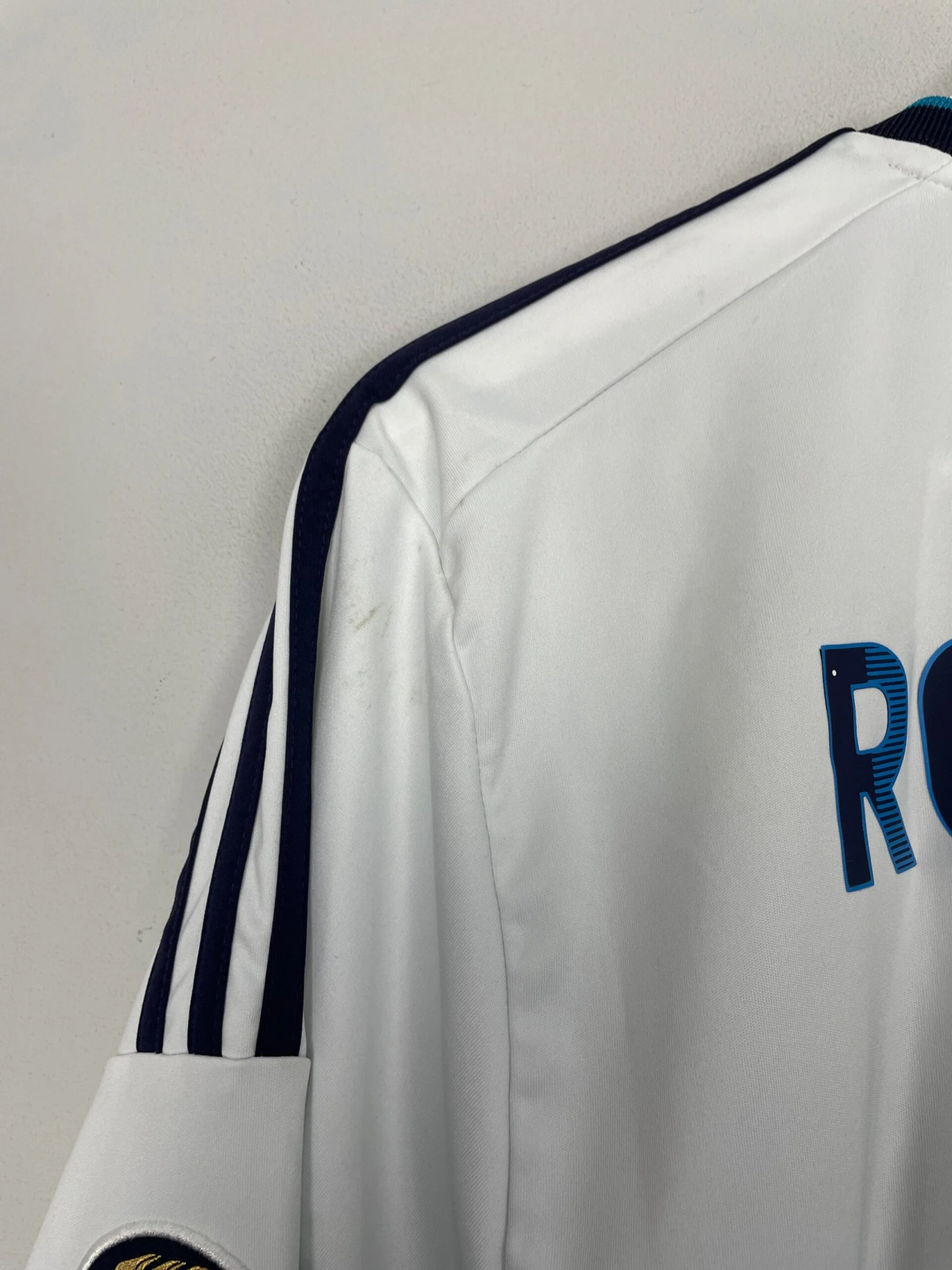 CONDITION – Good – a couple of very faint marks to the lower front and back of the right shoulder, a couple of small pulls to the right of the shirt, name and number print is excellent with just a tiny spot to the letter ‘R’ of the name, slight overall fade to colours (see photos)